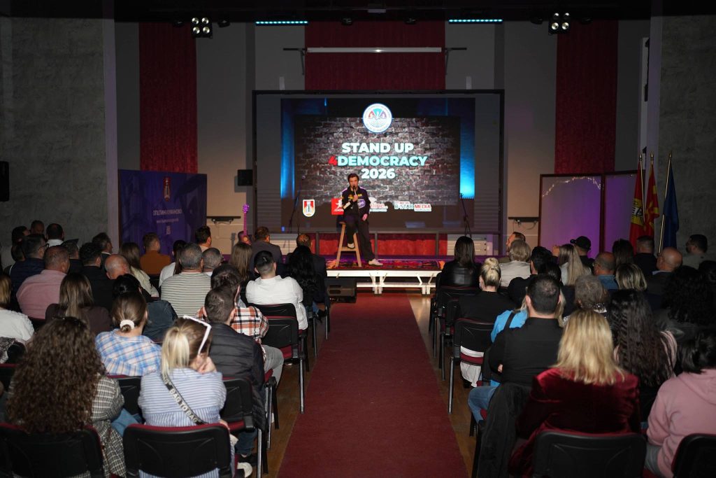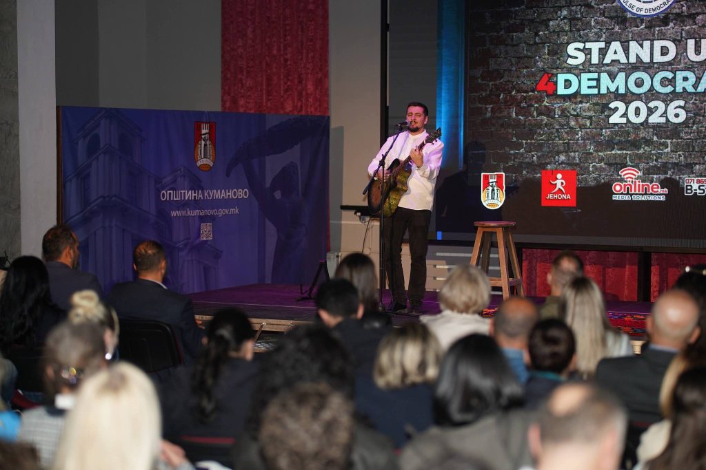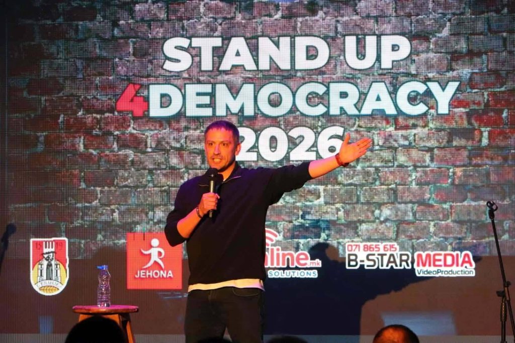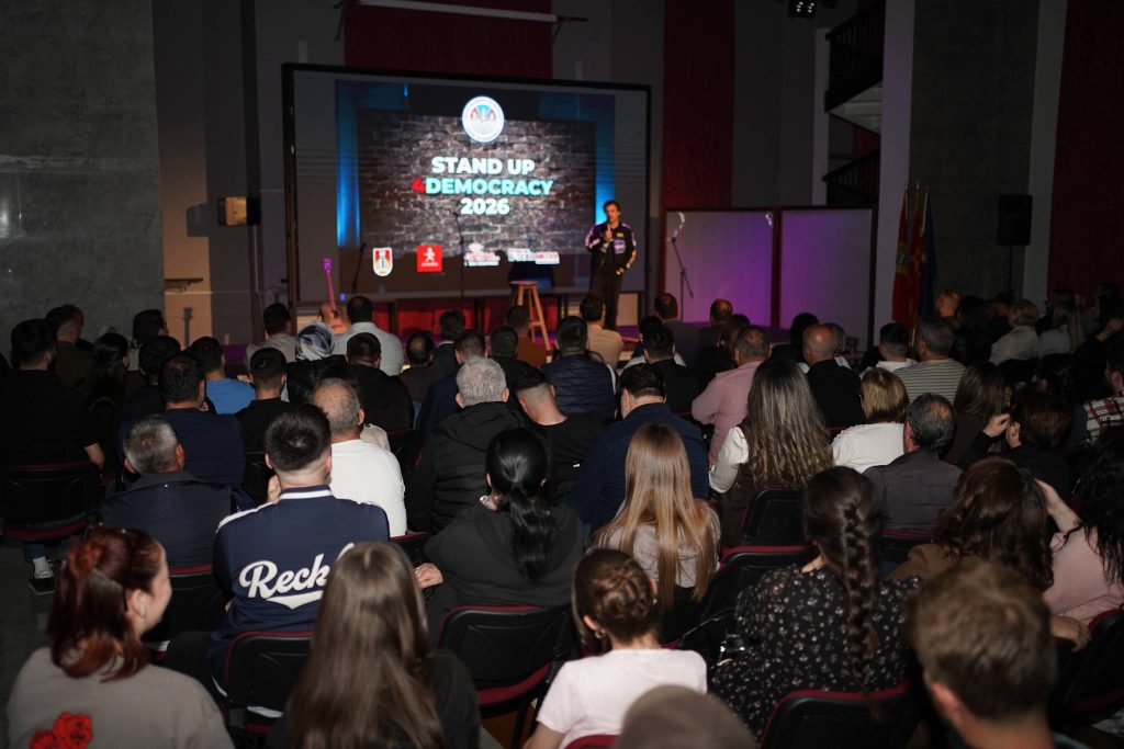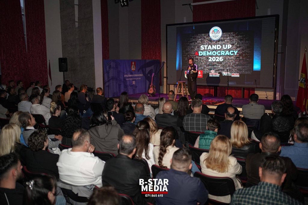 Mbrëmjen e kaluar u mbajt eventi “Stand Up 4Democracy 2026”, një aktivitet që ndërthur humorin me mesazhe të rëndësishme për demokracinë dhe angazhimin qytetar, duke mbledhur artdashës dhe qytetarë të shumtë në Kumanovë.