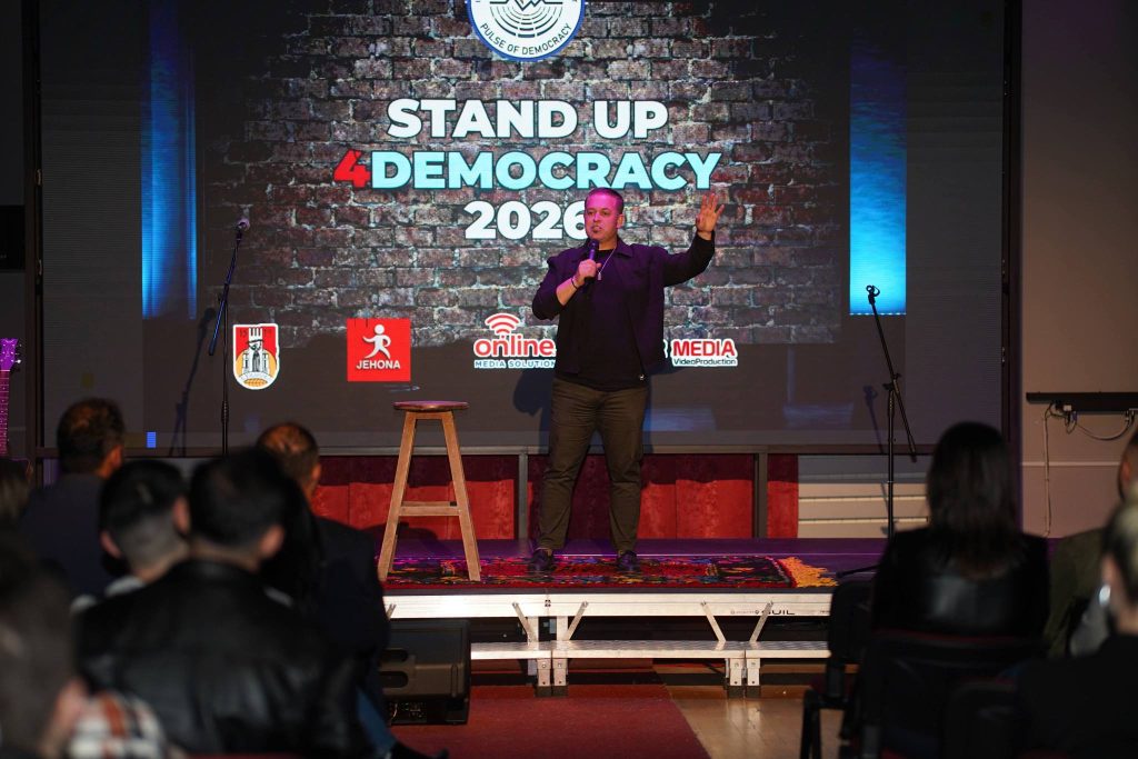 “Stand Up 4Democracy 2026” dëshmoi edhe një herë rëndësinë e artit dhe humorit si mjete të fuqishme për të nxitur reflektim shoqëror dhe për të promovuar vlera demokratike në komunitet./JEHONA/